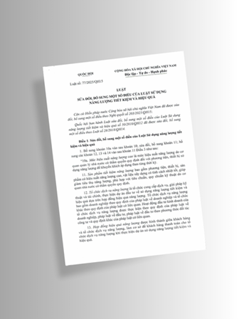Ngày 18 tháng 6 năm 2025, Quốc hội thông qua Luật sửa đổi, bổ sung một số điều của Luật Sử dụng năng lượng tiết kiệm và hiệu quả (SDNL TK&HQ).