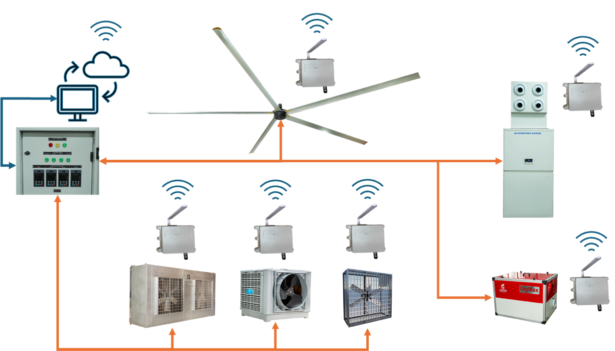 Thứ hai là Hệ thống giám sát và điều khiển thông minh thời gian thực Smart-THVi ® đóng vai trò nền tảng giám sát - điều khiển kỹ thuật số (digital monitoring and control platform) giúp kết nối và điều khiển đồng bộ các thiết bị thông gió - làm mát - cấp/khử ẩm qua giao tiếp chuẩn RS-485. Các cảm biến THVi được kết nối và truyền dữ liệu giám sát theo thời gian thực qua đường truyền không dây về Trung tâm xử lý dữ liệu, cho phép hiển thị các thông số giám sát - điều khiển qua màn hình phòng điều khiển hoặc trực tiếp trên thiết bị di động. Hệ thống Smart-THVi ® đóng vai trò điều phối hoạt động của các thành phần trong hệ thống theo thời gian thực, giúp tối ưu hóa tỷ lệ sử dụng từng thiết bị theo sự biến động của môi trường và thực tế vận hành. Việc cảnh báo cũng như tác động điều khiển thông minh của hệ thống được thực hiện trên cơ sở bộ chỉ số về mức độ căng thẳng nhiệt (heat stress) được xác định theo các tiêu chuẩn TCVN 7112:2002 (ISO 7243:1989) và ASHRAE 55-2023.