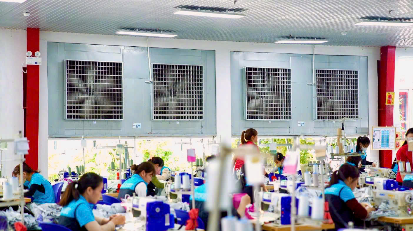 Quạt dẫn hướng Smart DC Panel hiệu năng cao tại nhà xưởng (xưởng may M8) Công ty TNHH Maxport Limited (Việt Nam).